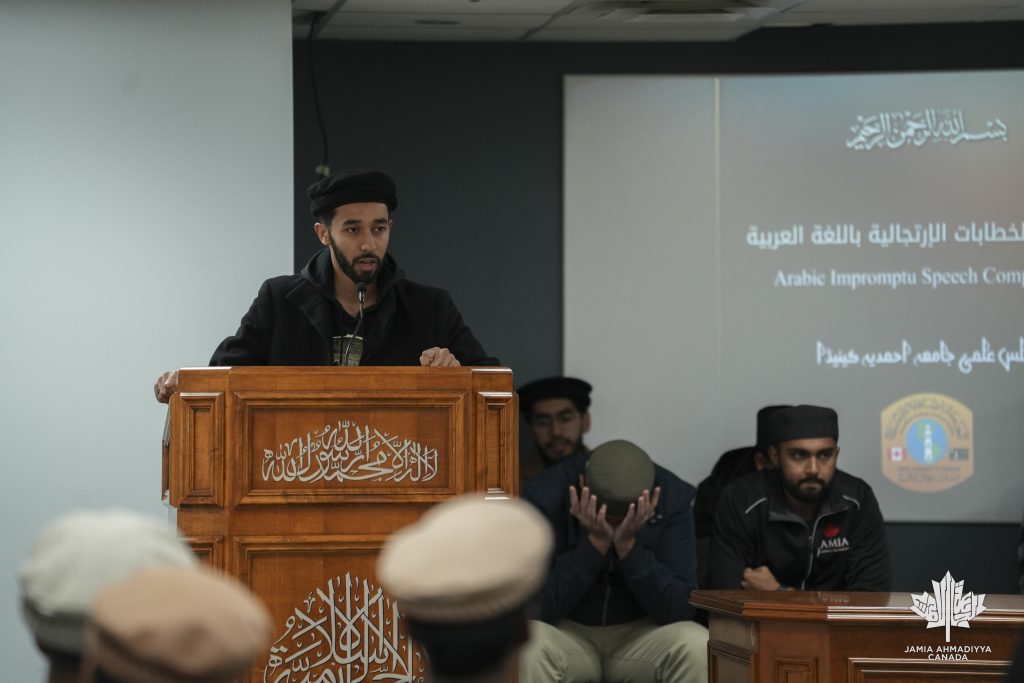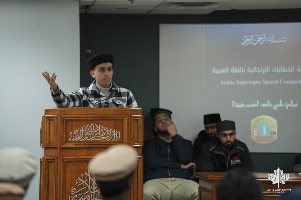 Alhamdulillah, Jamia Ahmadiyya Canada held the Arabic Impromptu Speech Competition on November 6th, 2025. The competition aimed to enhance students’ proficiency in spoken Arabic and develop their ability to think critically and express ideas confidently under time constraints. Participants were given random topics and a short preparation time before delivering their speeches.
